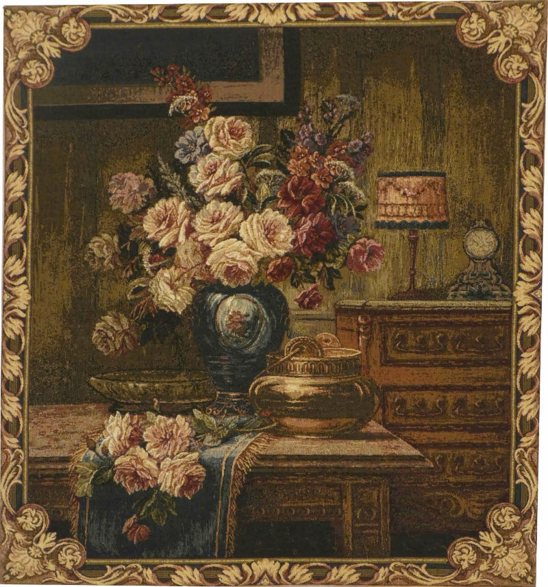 This 1930's Floral Setting tapestry is woven in Italy very finely so that all the details of the bouquet are clear to enjoy. It shows the flowers in a room setting and is from a...MORE