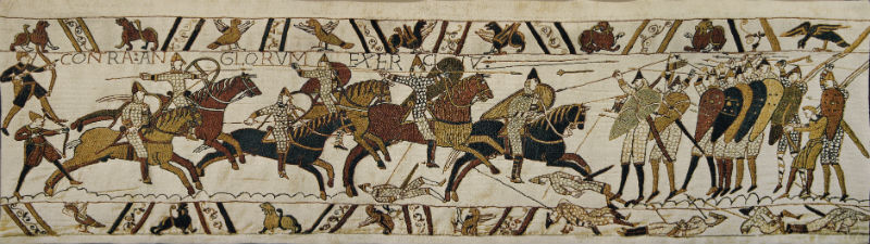 The Bayeux Tapestry Battle scene shows the conclusive Battle of Hastings in 1066 as the Norman army of Duke William of Normandy battle the Saxons led by King Harold. Our most popular Bayeux Tapestry wall-hanging.