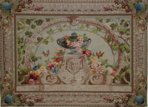 Beauvais is a fine quality French tapestry available in three versions inspired by a 19th century tapestry commissioned for the dining room at the Elysee Palace in Paris. This is the principal one in a fine quality wool and cotton French tapestry weave. It is lined and has a rod pocket for easy hanging. (If my memory is correct I saw it in the wonderful Musee d'Orsay in Paris.) The larger size is non-returnable as it is a 'special order'.