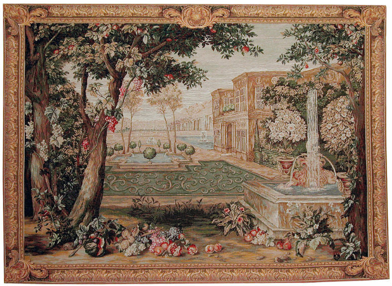 The Chateau Garden tapestry shows a classic 17th century French chateau setting of formal gardens with a fountain. This high quality wool and cotton weave has a fullness from the...MORE