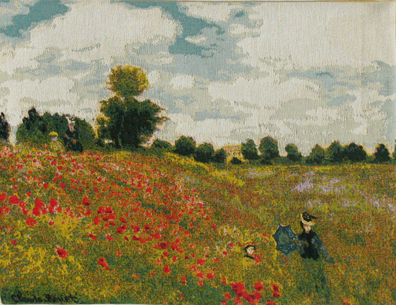 Claude Monet's Poppies near Argenteuil painted in 1873 is now available as a French art tapestry. The original oil painting is in the Musee d'Orsay, Paris. This Monet tapestry is woven in Belgium in 100% cotton, it is lined and has a rod pocket for easy wall-hanging.