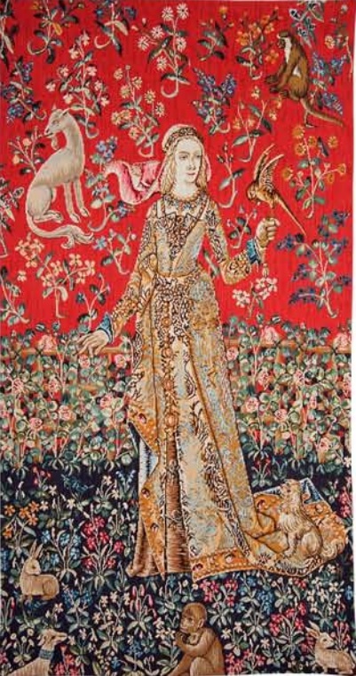 The Dame de Cluny tapestry from The Lady with the Unicorn tapestries series is one of three matching portieres. These make a stunning triptych: the Lion, the enigmatic Dame (Lady)...MORE