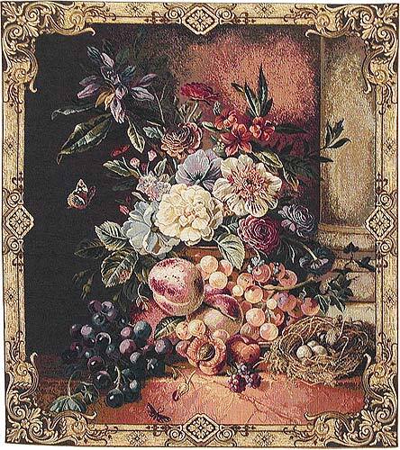 The Fruit and Flowers tapestry is very finely woven and the resulting excellent detailing, combined with the budget price, make this one of our most popular Italian wall tapestries. There is so much to see and enjoy in this tapestry wall-hanging. Woven in Italy in a cotton/viscose blend, it is lined with a rod pocket for easy wall-hanging. We enclose hanging information with every order.