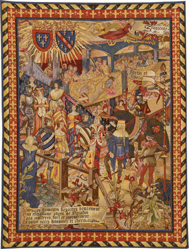 Jean-Paul Laurens Tournament tapestry - "Une descente de tournoi à la fin du XVème siècle" was drawn by Laurens and woven at the Manufacture Royale des...MORE