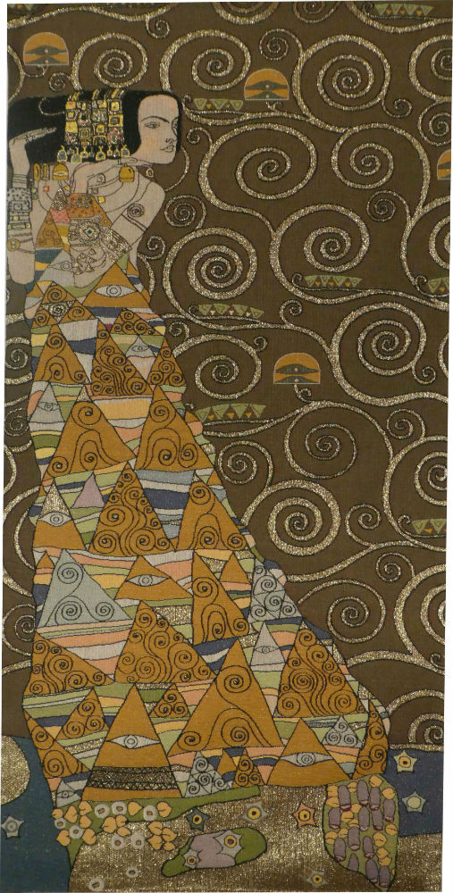 The Waiting tapestry Left is from a painting by Viennese artist Gustav Klimt (1862-1918). It strikingly woven in 80% cotton and 20% viscose. Today it is available as a French tapestry wall-hanging which is lined, with a rod pocket - we provide instructions for its easy hanging and care.