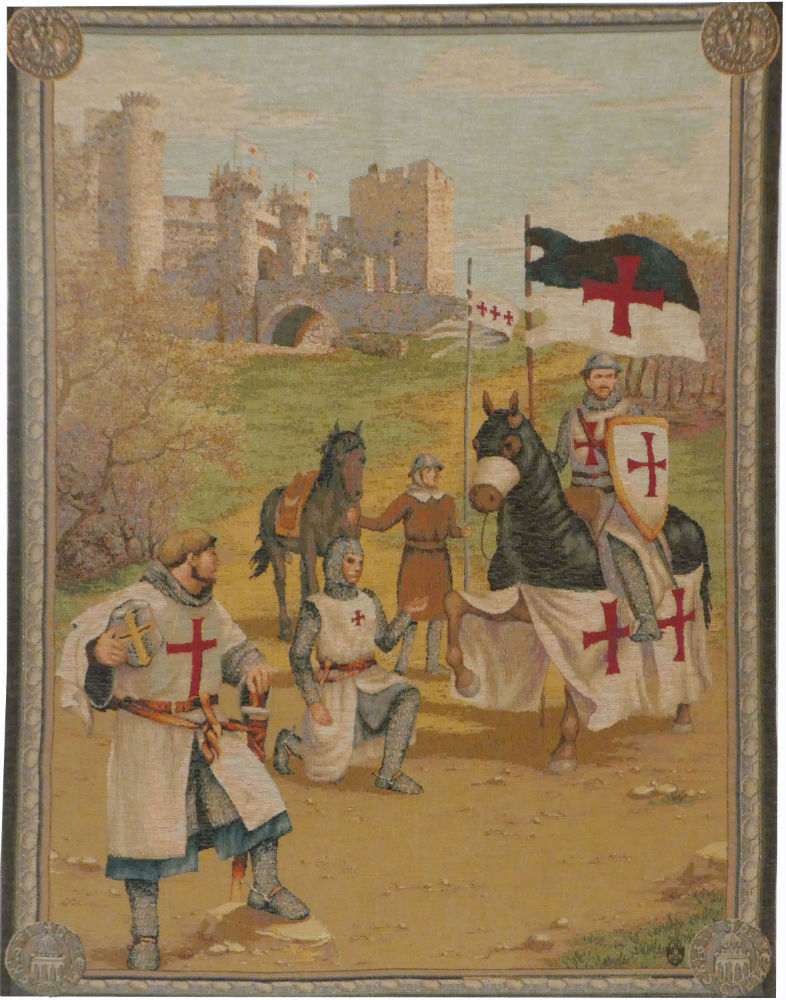 This Knights Templars tapestry from the period of the Crusades shows three knights of the 12th and 13th century order - from our French medieval tapestries, woven in three sizes...MORE