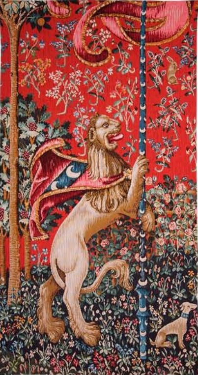 The Lion Majestueux tapestry from the Lady and the Unicorn tapestries is one of three matching portiere tapestries. These make a stunning triptych: the majestic Lion, the Lady and...MORE