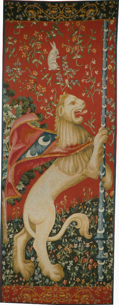The Lion tapestry features a detail from the La Dame a la Licorne series of tapestries from the 15th century now at the Cluny Museum in Paris. The lion was a popular beast in...MORE