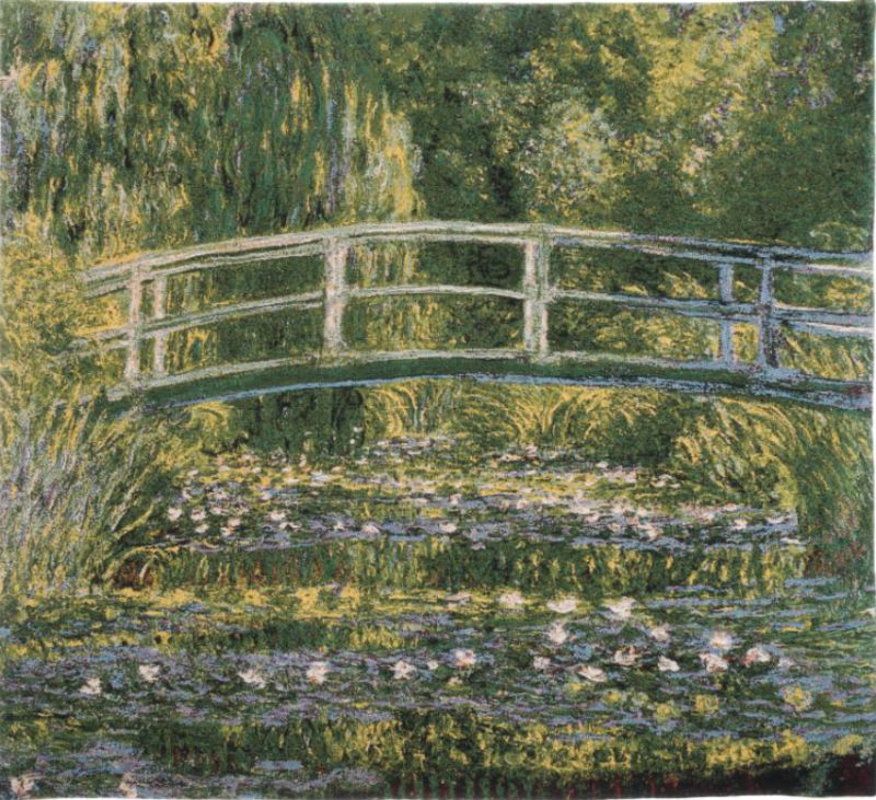 Monet Pont de Giverny tapestry shows the iconic bridge above water lilies at Giverny in Normandy. Claude Monet created this lake just beyond the garden of his home. All can be...MORE