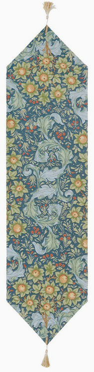 The Orange Tree with Acanthus Leaves table runner - blue is inspired by two design motifs used by William Morris: the orange tree (which also appears in the Lady with the Unicorn...MORE