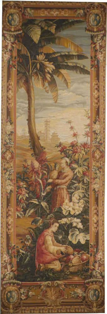 Several scenes of the Pineapple Harvest tapestry are woven in France today:-