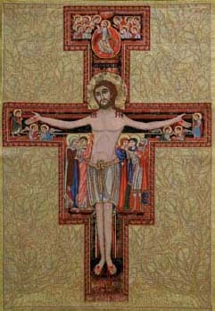 The San Damiano Cross dated about 1100 is now in the Basilica of Santa Chiara in Assisi, with connections to St Francis of Assisi. This crucifixion tapestry is woven in Italy and...MORE