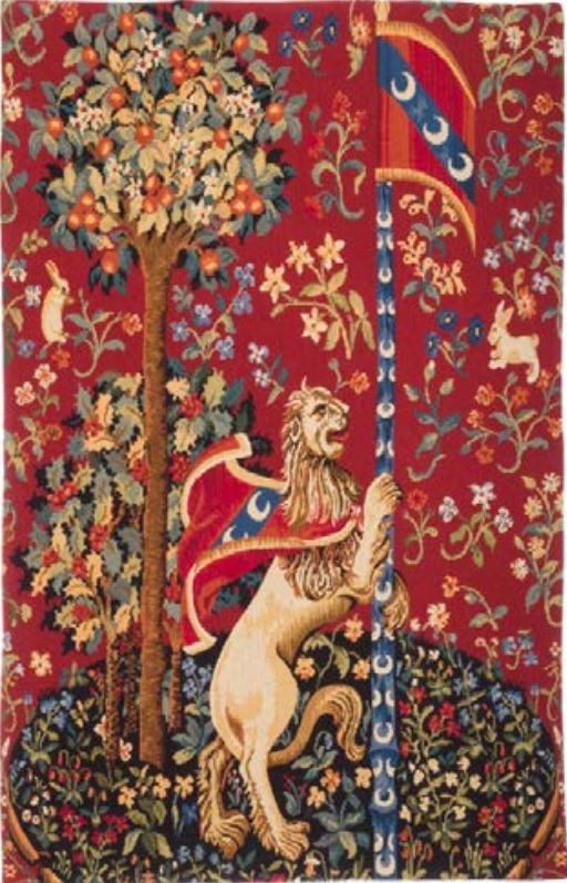 The Tall Lion tapestry features the lion from the Lady with the Unicorn tapestry series at the Cluny Museum in Paris. The lion matches the Tall Unicorn tapestry, both animals...MORE