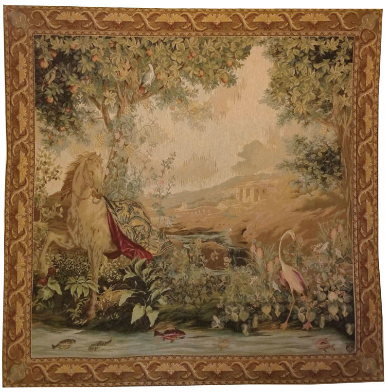 This tapestry is from the series of 17th century tapestries "Tentures des Indes". These eight tapestries were woven at Les Gobelins workshops in Paris. Now a fine French tapestry that is hand-finished and lined with a rod pocket - we supply tapestry hanging information with your order.