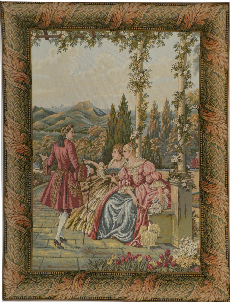 The Terrace Elegance wall tapestry is an Italian tapestry is woven at Lake Como. It is set in the late 18th century and features Italian nobility at the elegant Villa d'Este...MORE