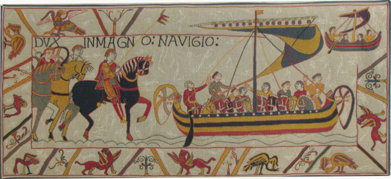 The Embarkment tapestry shows William, Duke of Normandy, embarking for Saxon England with his cavalry. This brief scene from the Bayeux Tapestry shows Duke William's fleet...MORE