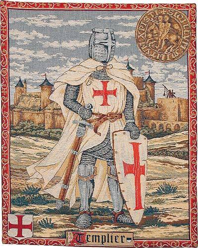 The Knight Templar tapestry is 23"x18" size, a French tapestry wallhanging fully lined with a rod pocket. We supply hanging information with each order.