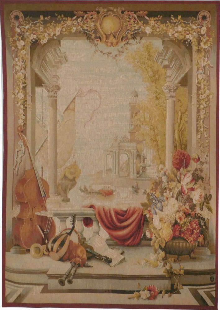 The Port of Tuscany is a French tapestry wall-hanging showing a port in Tuscany on the West coast of Italy. We love its antique appearance. The original, sometimes called the Port de Toscane tapestry, was woven in Beauvais at the end of the 18th century and it is now in the Mobilier National collection of France. This fine quality French tapestry in a 50% wool and 50% cotton weave is lined, with a rod pocket for easy hanging - we provide tapestry hanging information with each order.