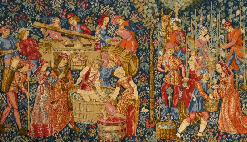 The Vintage Tapestry is a celebrated late 15th century French tapestry wallhanging at the Cluny Museum, Paris. The milles fleurs background of the period is employed having...MORE