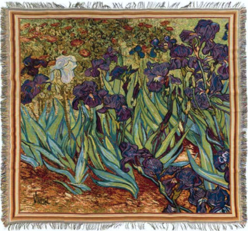 The Van Gogh Irises Throw adapts his painting of one white iris amongst many blue ones. This version is a soft fringed French tapestry throw - we have it as tapestries too. ...MORE