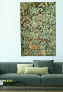 It is not entirely certain where verdure tapestries were first produced. However, it is known that by the sixteenth century, they had become a recognized tapestry art form. The word ‘verdure’ derives from the French word ‘vert’, meaning green. Initially, verdure tapestries were characterized by their green tones, complex foliage and flower motifs - such as the Aristoloches wall tapestry (left). Forests and woodlands were typical scenes. As their popularity rose more expansive, and expensive, designs incorporating wildlife were woven. It is these more elaborate designs that we most often associate with the verdure style today. For centuries verdure tapestries remained highly popular and were made on a large scale for export. That was, until the arrival of wallpaper, which served as a more economical way to decorate a room. In recent years verdure tapestries have seen a revival. These can change a room by creating a striking and impressive focal point, something which cannot be matched by wallpaper alone. The subtle earthy tones of this form of wall art can deliver that, whilst also being compatible with almost any style of décor (see above). Today, these tapestries are produced by respected weavers in France, Belgium and Italy, in a range of sizes so we can enjoy their aesthetic beauty virtually anywhere.. There is a good selection of themes to choose from: forests and lakes, flora and fauna, plus wonderful images of French châteaux, hunting tapestries, classic gardens and scenic landscapes. Quite a number are available in matching pairs. The lush greenery depicted in verdure tapestries, along with the idyllic scenery cannot help but create a beautifully harmonious room; peaceful, yet unobtrusive imagery which will complement and add to the ambience of your home. Further, a wall tapestry is an investment that will be there for generations to come.